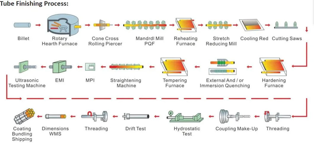 4. Re-use a disc heating furnace for periodic rolling, and use a non-entry furnace for reheating, cooling, straightening, pipe cutting, and inspection.